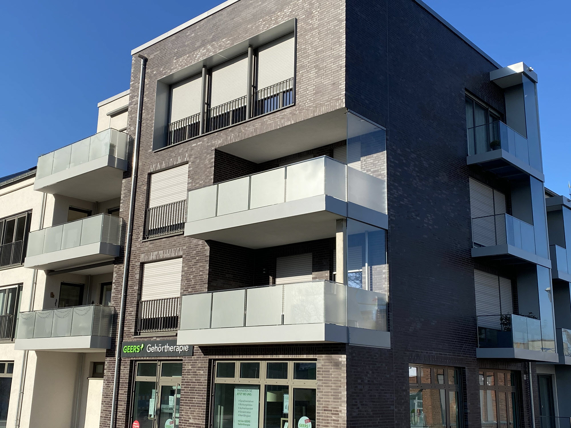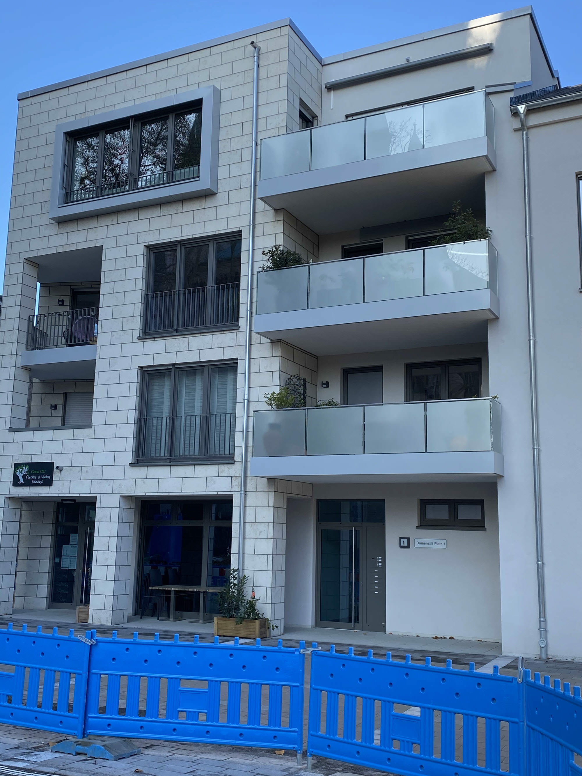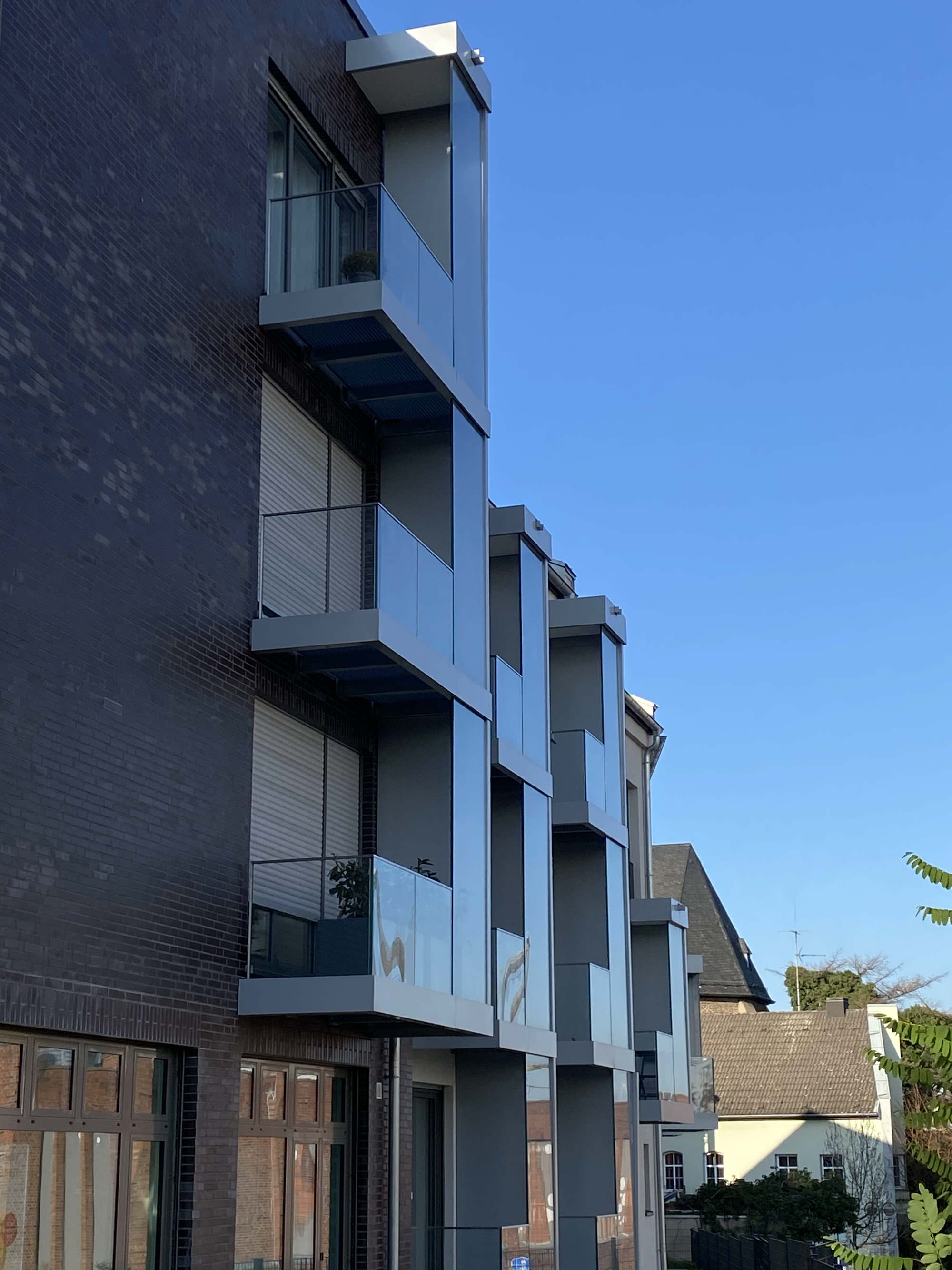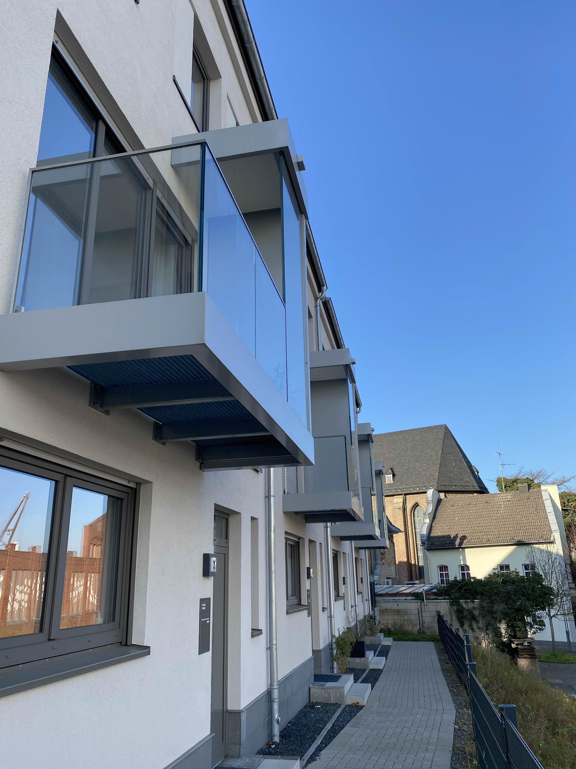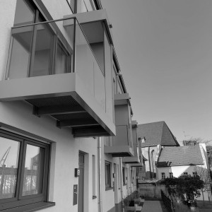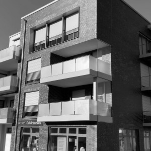 Planung, Fertigung und Montage von Balkonen aus Stahl mit Ganzglasgeländern und Schallschutzwand