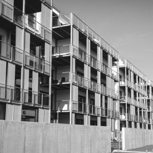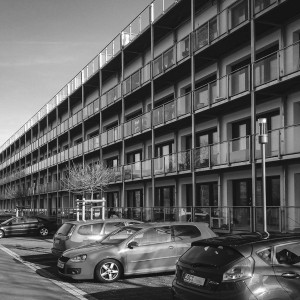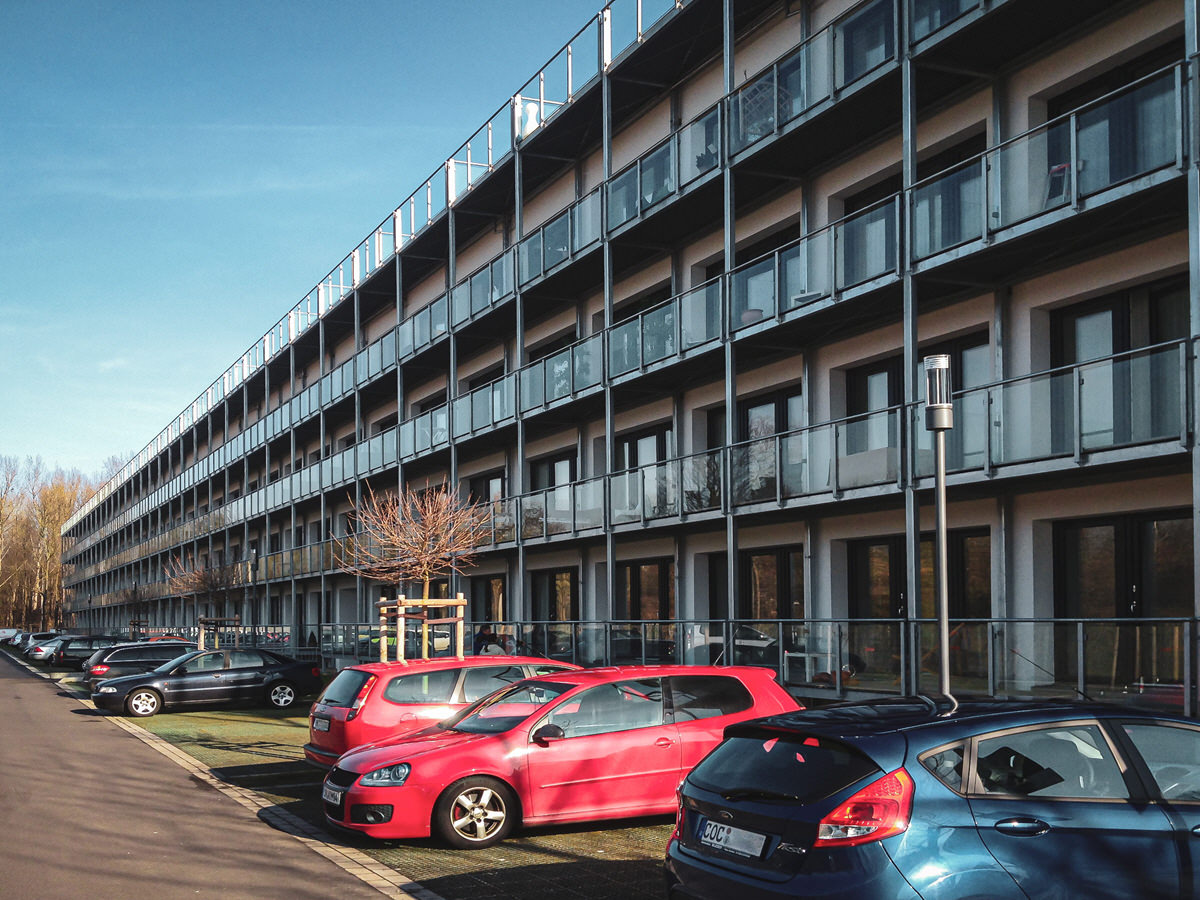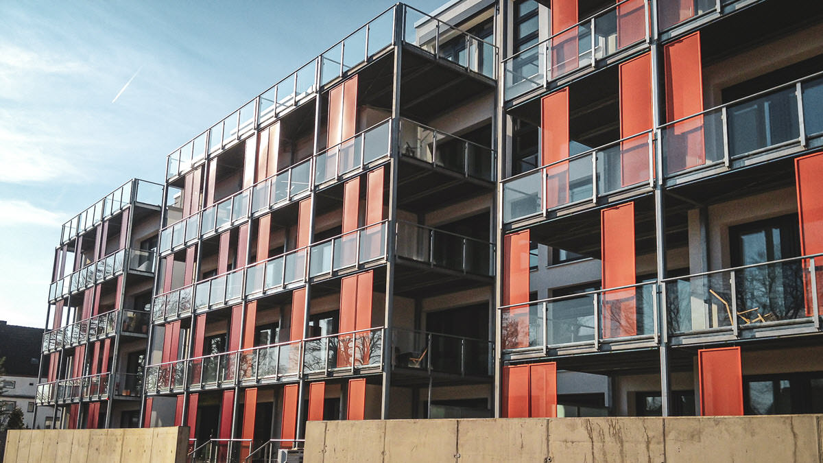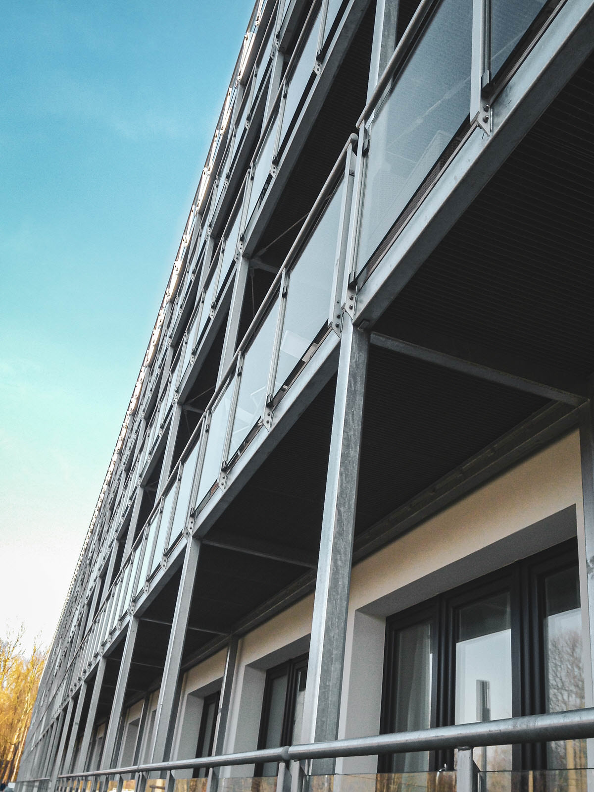 Balkonanlage mit Ganzglasgeländern über 5 Etagen