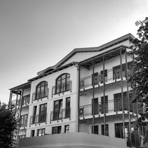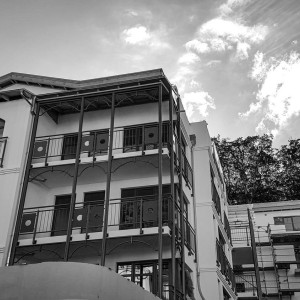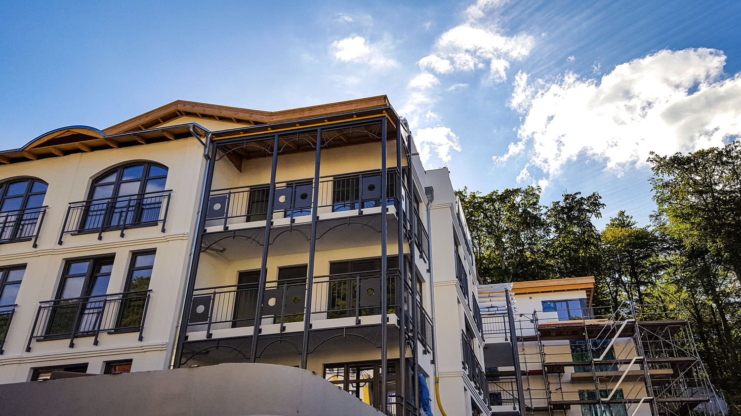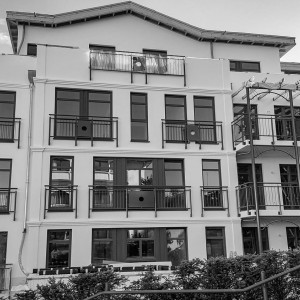 Geländer- und Säulenanlage inklusive Dachabstützung aus Aluminum mit Pulverbeschichtung